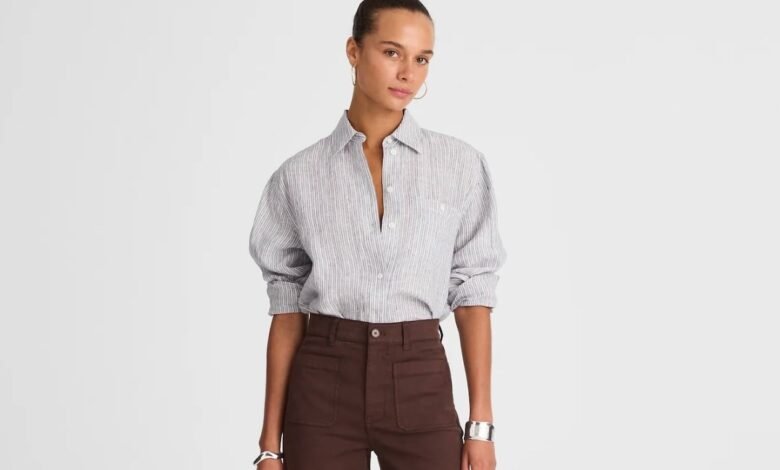 Above is Madewell’s patch-pocket pair. Brown is a big color this fall and would be ideal for work, since, as Magnetic Fields frontman Stephin Merritt once told me in an interview, “Brown shows absolutely nothing. You’d have to spill some fuchsia paint.”