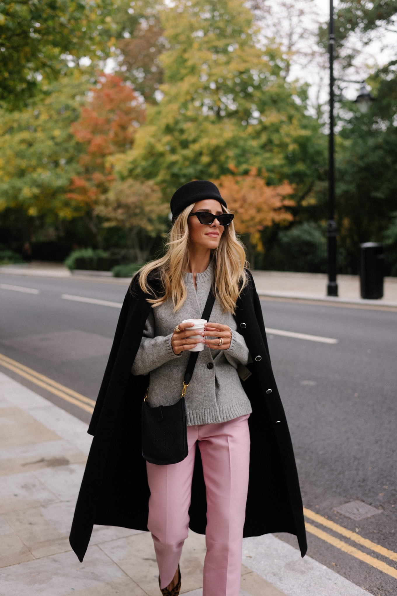 Hermes Coat (similar here and here), Soeur Cardigan, Kallmeyer Pants (sold out, similar here and here), Toteme Wedges, Hermes Bag (available here, similar here), Dior Sunglasses, Gigi Buris Hat