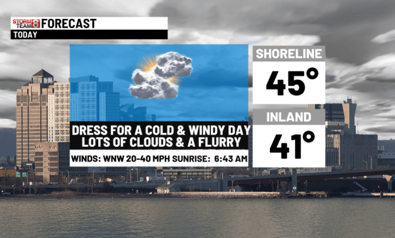A cold wind all day with a chill through midweek