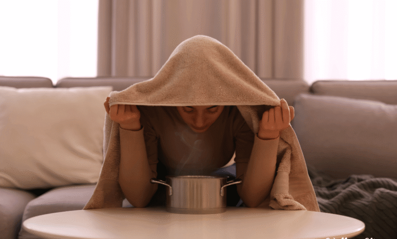 - Turn the stove off and/or move the pot to a countertop. Drape a towel over your head and lean over the steam.