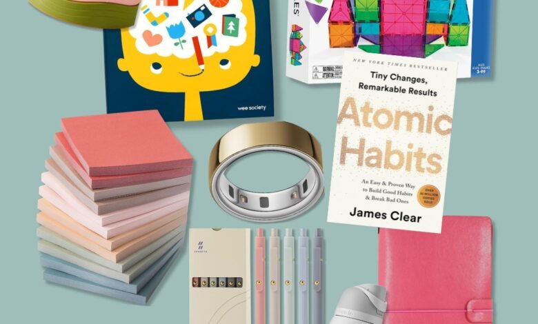 Atomic Habits, a lined notebook, or a daily journal keeps reflection practical. A short list, one tracked habit, or a few lines at night is enough to stay consistent without overcomplicating it.