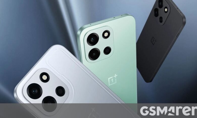 OnePlus Nord 6 in Fresh Mint (left), Pitch Black (center), and Quick Silver (right)