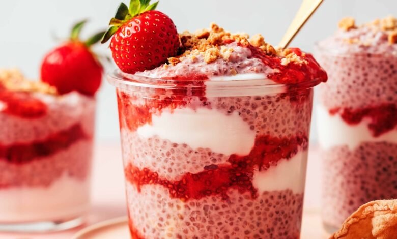 Dreamy, creamy chia pudding awaits! If you’re feeling fancy, layering with strawberry compote and yogurt or coconut whipped cream is extra amazing (and beautiful). And fresh strawberries and crushed graham crackers really take it to the next level!