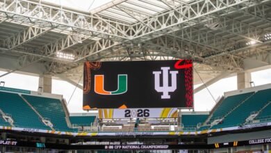 The scorebaord inside the stadium before the College Football Playoff National Championship college football game at Hard Rock Stadium in…